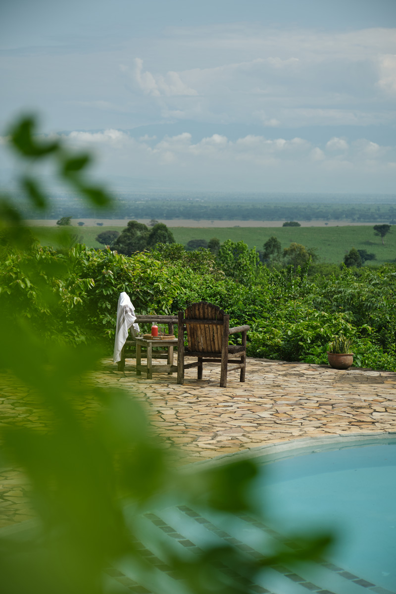 The renowned Kyambura Gorge Lodge in Uganda sits on the edge of the magical Kyambura Gorge, a sunken rainforest and home to the ‘Lost Chimps of Kyambura’. Built as part of the Kyambura Gorge Ecotourism project, the lodge has been converted from a coffee store to create a breathtakingly beautiful space, with sweeping views of the rolling savanna and the distant Rwenzori Mountains.